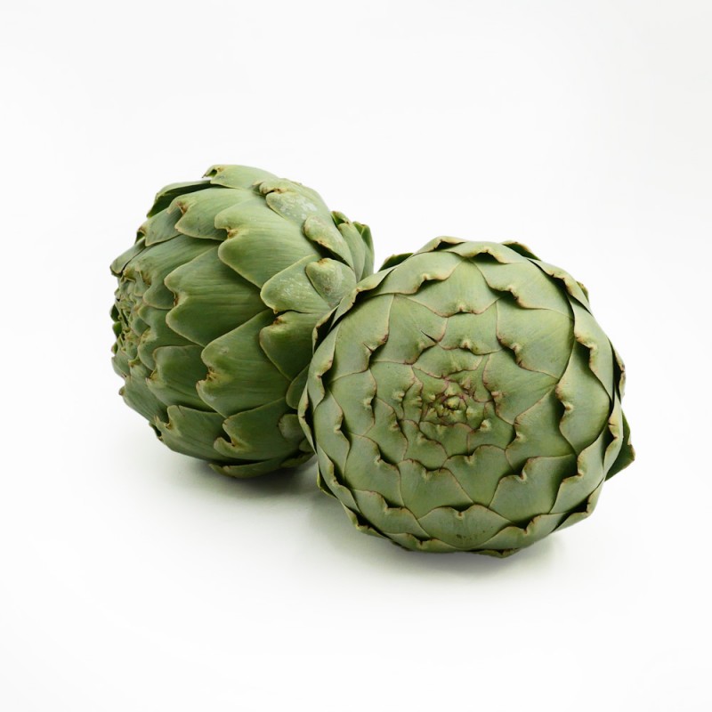 Ce lot de 2 artichauts présente des têtes bien formées, charnues et fraîches, idéales pour la cuisson entière ou en préparation détaillée.