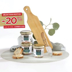 Composition du coffret : 1 Terrine Quercynoise bocal 90g, 1 Délice aux grattons confits bocal 90g, 1 Terrine de porc au magret de canard fumé bocal 90g, 1 Terrine de campagne au piment d’Espelette bocal 90g, 1 Tartinade au foie gras du Sud-Ouest parfumée au Sauternes (40% foie gras) bocal 90g