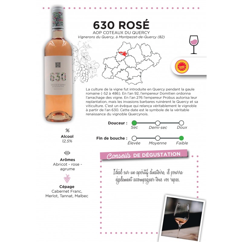 Le 630 vous séduira par la complexité de son nez, où se mêlent agrumes et fleurs blanches ; ainsi que par la richesse et la rondeur de sa bouche.