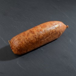 Reconnaissable entre toutes, cette saucisse offre une chair ferme au hachage grossier.