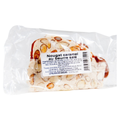 Mélange harmonieux d'amandes, de miel et de blancs d'œufs, le nougat offre une texture à la fois ferme et fondante, ici agrémenté de caramel beurre salé pour encore plus de gourmandises !