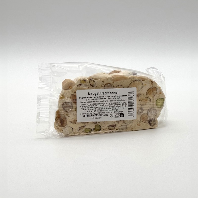 AMANDES, sucre, miel, NOISETTES glucose, PISTACHES, blanc d'ŒUF. Traces possibles d'autres fruits à coques, de GLUTEN.