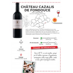 Fruit de l'assemblage des cépages Grenache Noir et Syrah, Cazalis AOP Languedoc est un vin d’un rouge grenat intense et d’une brillance profonde. Le nez reflète des arômes complexes de fruits noirs. En bouche, on découvre un parfait équilibre entre les arômes fruités et les tanins harmonieux.