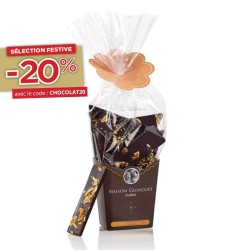 Incontournable, ce sachet renferme une sélection gourmande de chocolats noirs agrémentés de diverses friandises : noisettes, amandes, morceaux d'orange confite, cranberries, poudre de framboise, graines de sésame, biscuits et céréales. Il y en a pour tous les goûts !